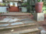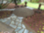 This is a view from the deck. This path takes you from the deck to a large circle pad perfect for a lounger or two. From the pad the path continues and is flanked by two black clay pots. Beyond that lies treads that will lead you into the green beyond.