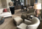 Custom upholstery on size specific frames allow the furnitings to flow nicely in this space with its angular walls. The low arms on this small sofa keep it from being too bulky and blocking the rest of the room.